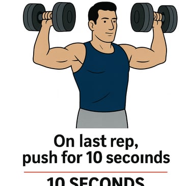 Count out loud if needed (“one-Mississippi” still works, even if you’re over 50).Final rep push: when you can’t lift anymore, keep pushing for 10 seconds.